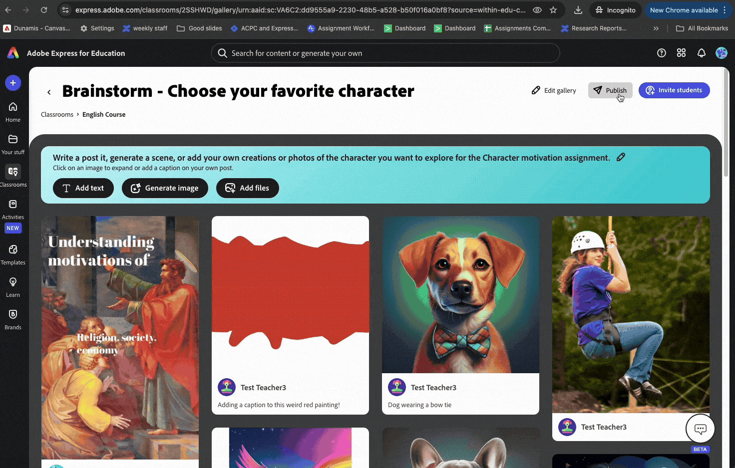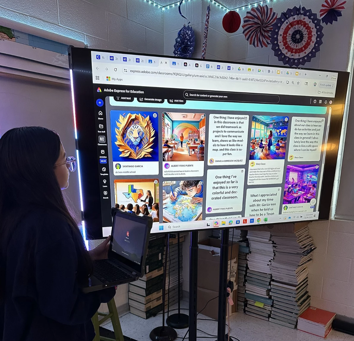Her students’ reflections were displayed in a live Gallery, turning social studies content into a vibrant, visual conversation. As Tania noted, “Our 7th graders explored The Early People of Texas and used AI via @AdobeForEdu Classroom Galleries to share their answers with classmates.” See Tania’s post on X