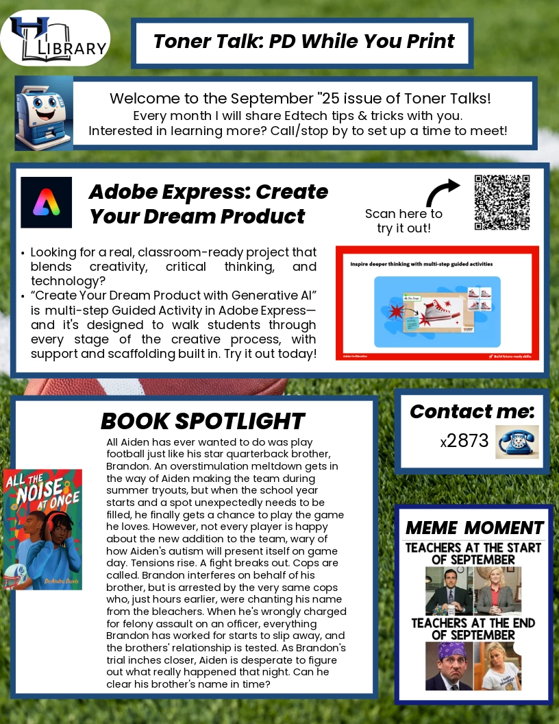 September's Toner Talks is ready to go! This is a great way to share short, quick PD for your staff!