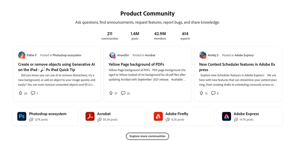- A streamlined homepage where you can explore product forums, browse creative inspiration galleries, and discover upcoming events—all in one place.