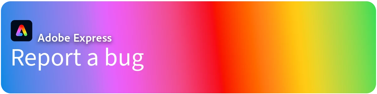 Thanks for being part of the Adobe Express Community! If you’ve encountered something unexpected or not working quite right, we’d love to hear about it. You can help us help you by submitting a clear and detailed bug report.