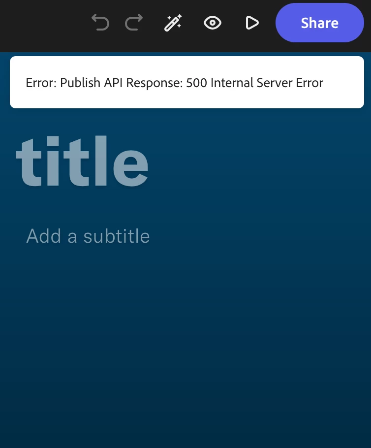 Have you been able to push your Webpage to the web? I keep getting this error: Error: Publish API Response: 500 Internal Server Error