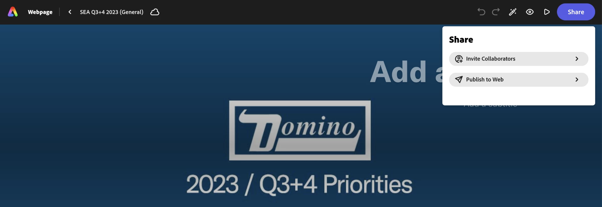 Where is the "Duplicate" function for Webpages? I use Adobe Express to create a daily report for my team, and the duplicate function is critical to avoid wasting a lot of time setting up identical formatting.