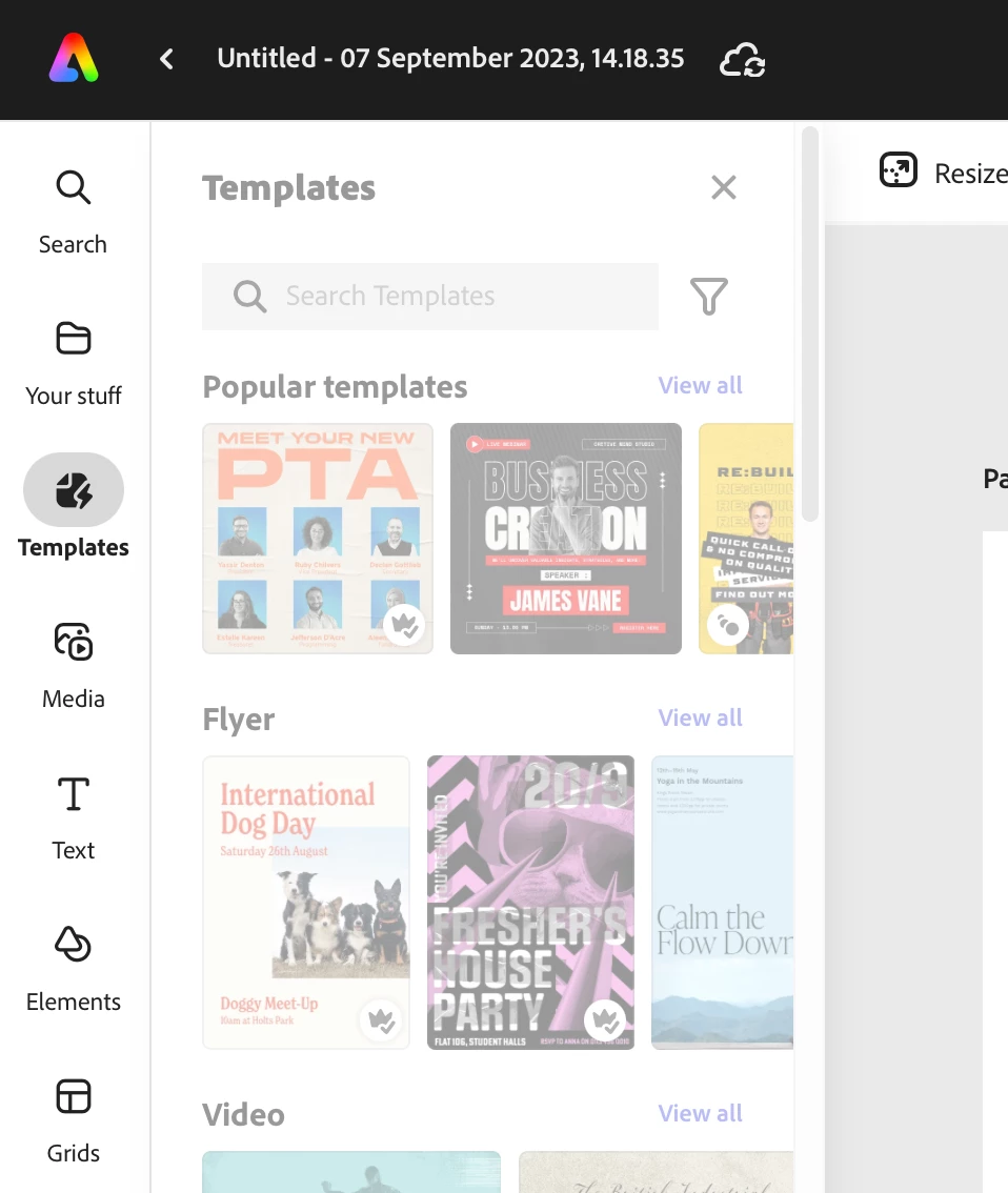 ... and it continues! Just tried to edit a simple social media post that I created on my mobile, and when I try and edit the photos on the original template, it doesn't allow me to ungroup the two elements that for some reason the photos on that design have. The Ungroup icon just doesn't work! So I delete the whole thing to start again and choose Twitter and template option... but all the Templates are then greyed out in the side bar???? See attached.
