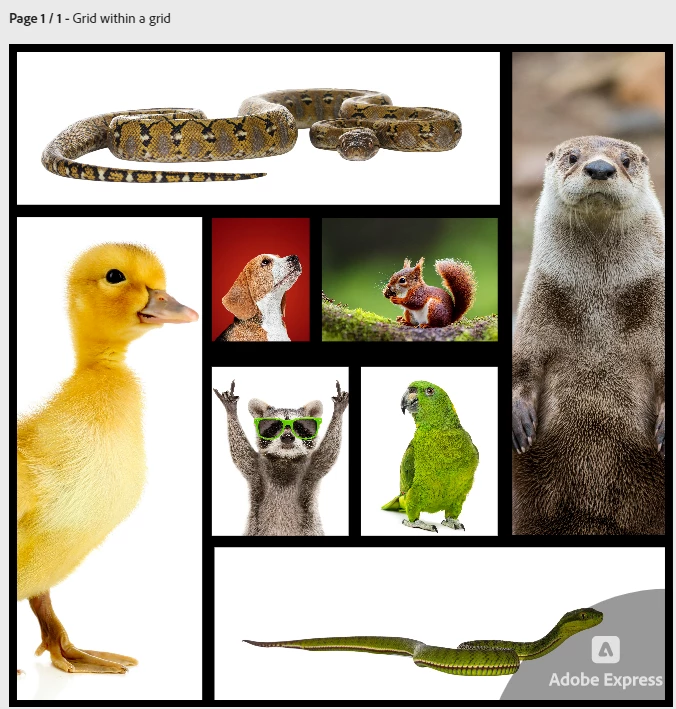 Grids are now available in Adobe Express! Create quick and easy collages with photos and videos by adding Grids to your design. Create custom looks using multiple grids in one design, adjust the size and scale of images in your grid, or customize your grid to fit your content. More Grid features are coming soon, including drag & drop to swap the placement of media within a grid and the ability to change grid layouts while keeping your content intact.