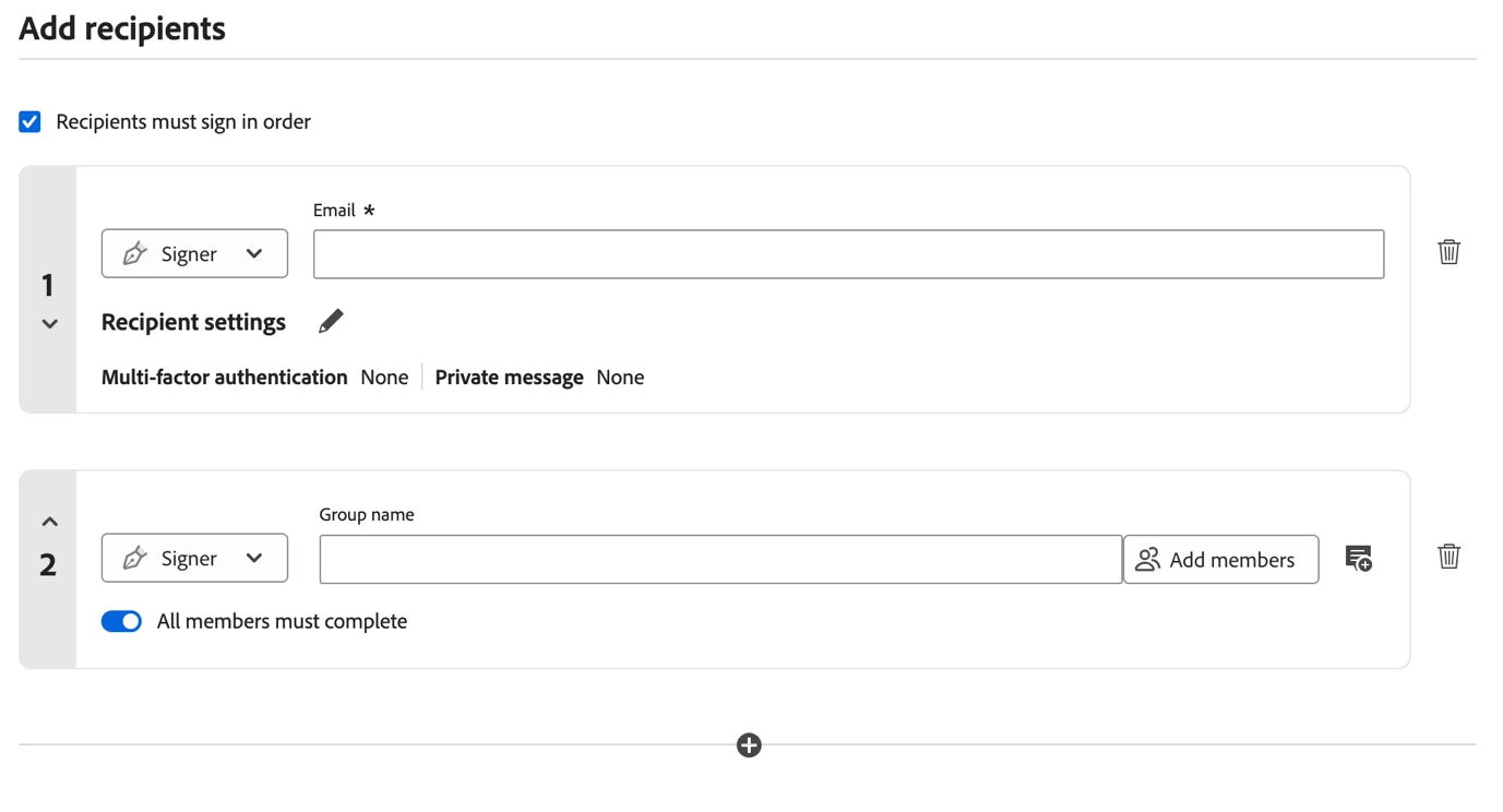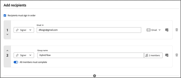 In the new experience, if you need only a group of people to participate at a specific phase, then add a recipient group and enable the toggle. To indicate that all recipients must participate.