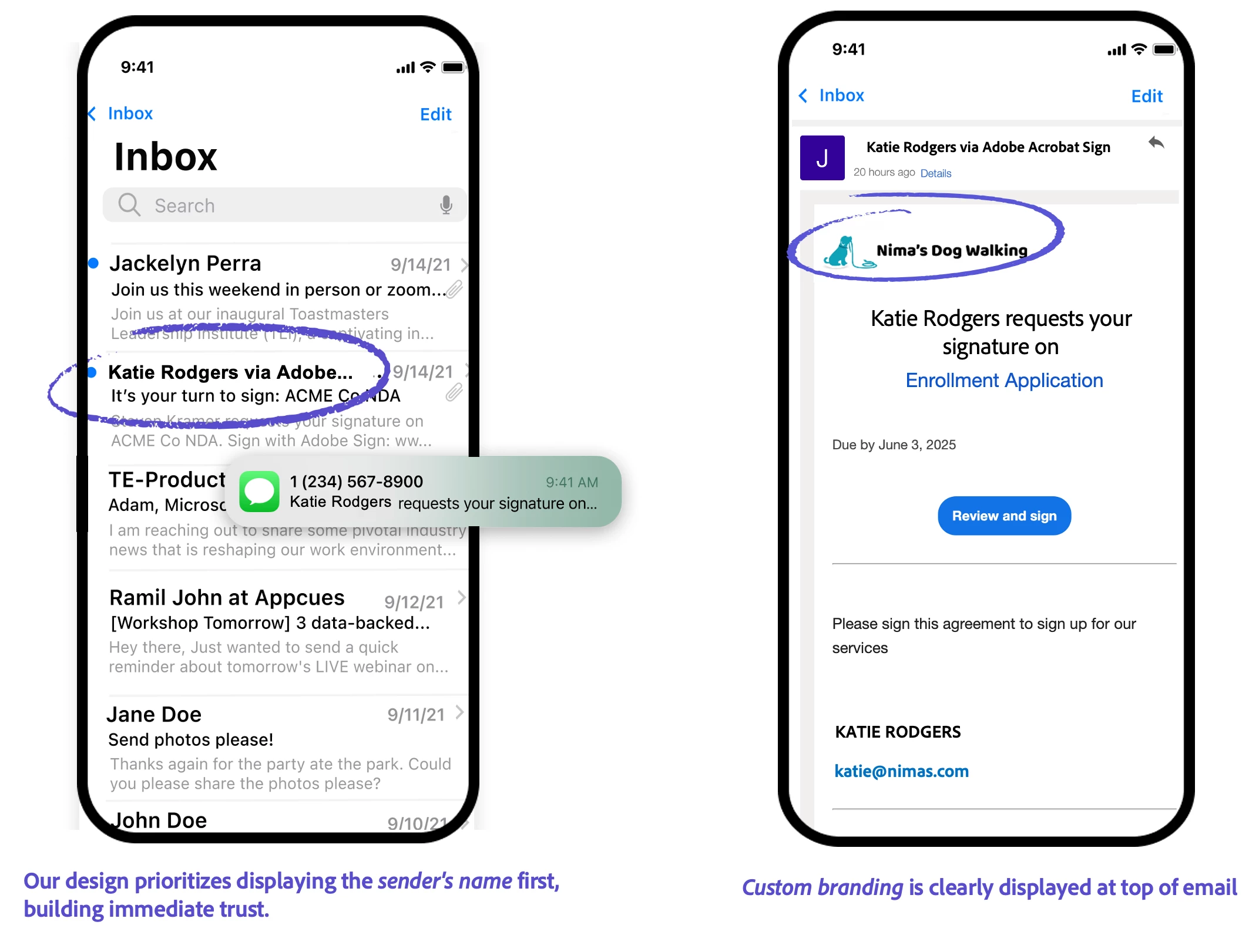 Business moves at the speed of a signature! For businesses, the signature represents the last mile in their journey to acquire or service customers. Each year, hundreds of millions of users electronically sign agreements. Many of these users, who are used to signing on paper, are signing electronically for the first time. A seamless and intuitive user experience helps users easily understand agreements, fill the required information, and complete the signing process quickly. Any friction in the user experience can lead to delays in closing the transaction or worse - losing the customer. For something so critical, e-signing has seen little innovation for the last several years – until now.
