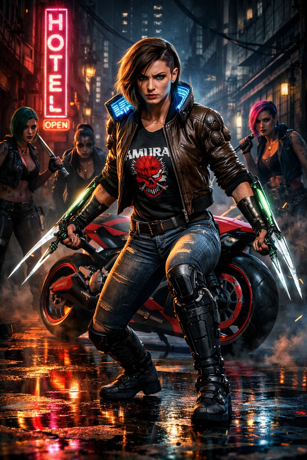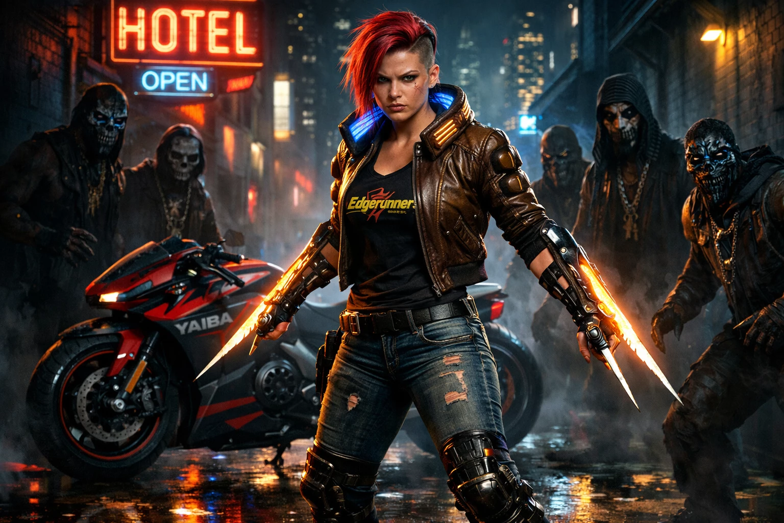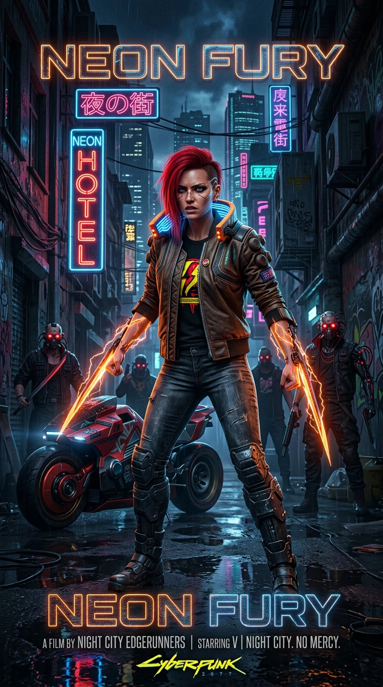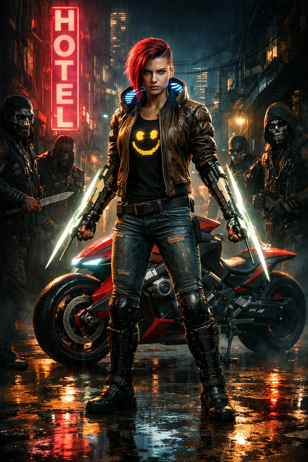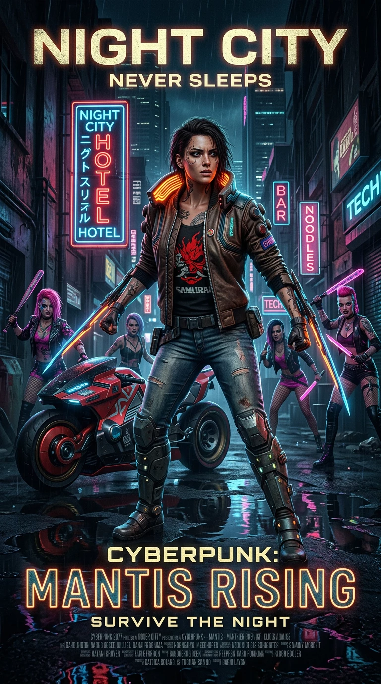 This poster starts with the main image, “split” in Photoshop so that the Indira hero is on a separate layer from the background. Generative Expand in Photoshop extended the image to the correct 27x40 aspect ratio and I used the Camera Raw filter to adjust the lighting, contrast, color, and sharpness of the Indira character. The Indira character is a little too small in the AI-generated original, so I also enlarged her. The Indira “franchise” logo is from Nano Banana.