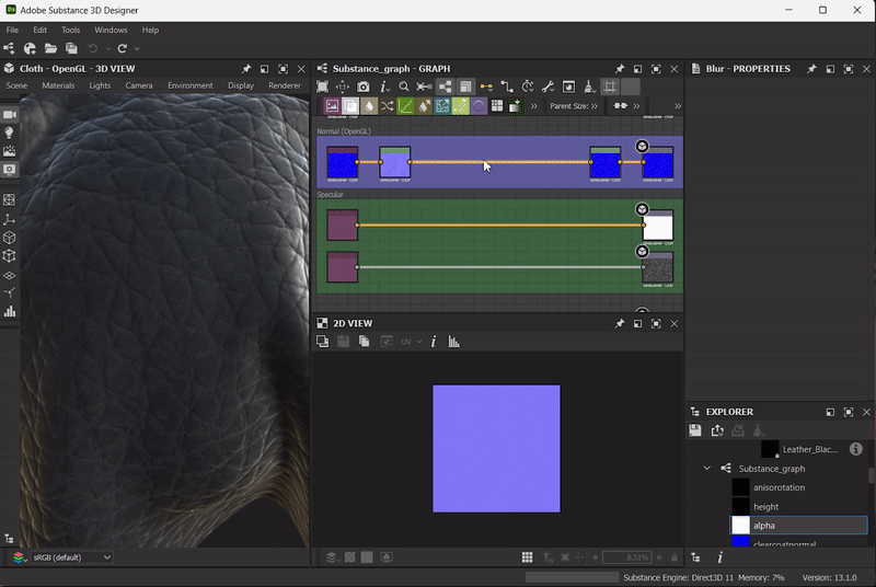 Substance 3D Designer 13.1 adds many quality-of-life improvements to the node graph, mainly regarding frames, to enhance the material creation experience. There is also the addition of AxF export which enables an interoperability workflow for users working with the AxF format.