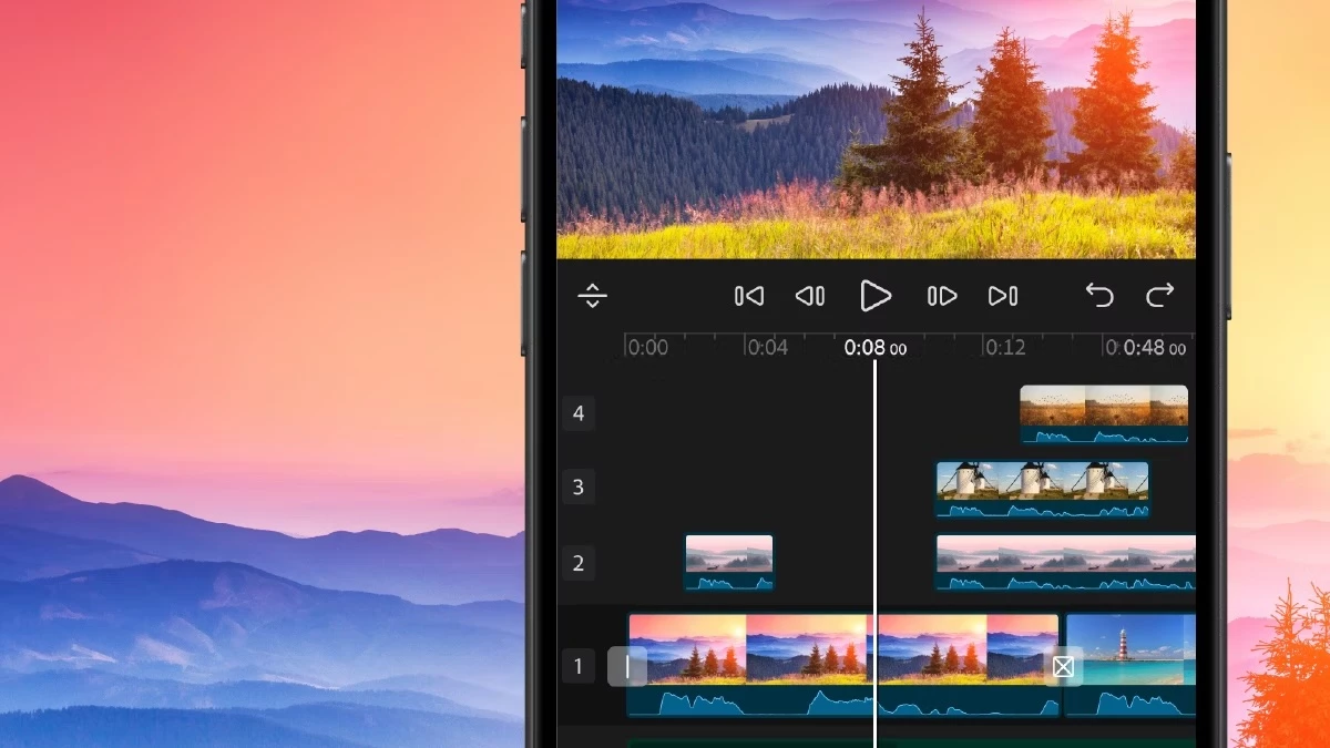 Make frame-accurate cuts, use unlimited tracks, and apply clip controls like reverse, unlink audio, and freeze frame—all directly from your phone.