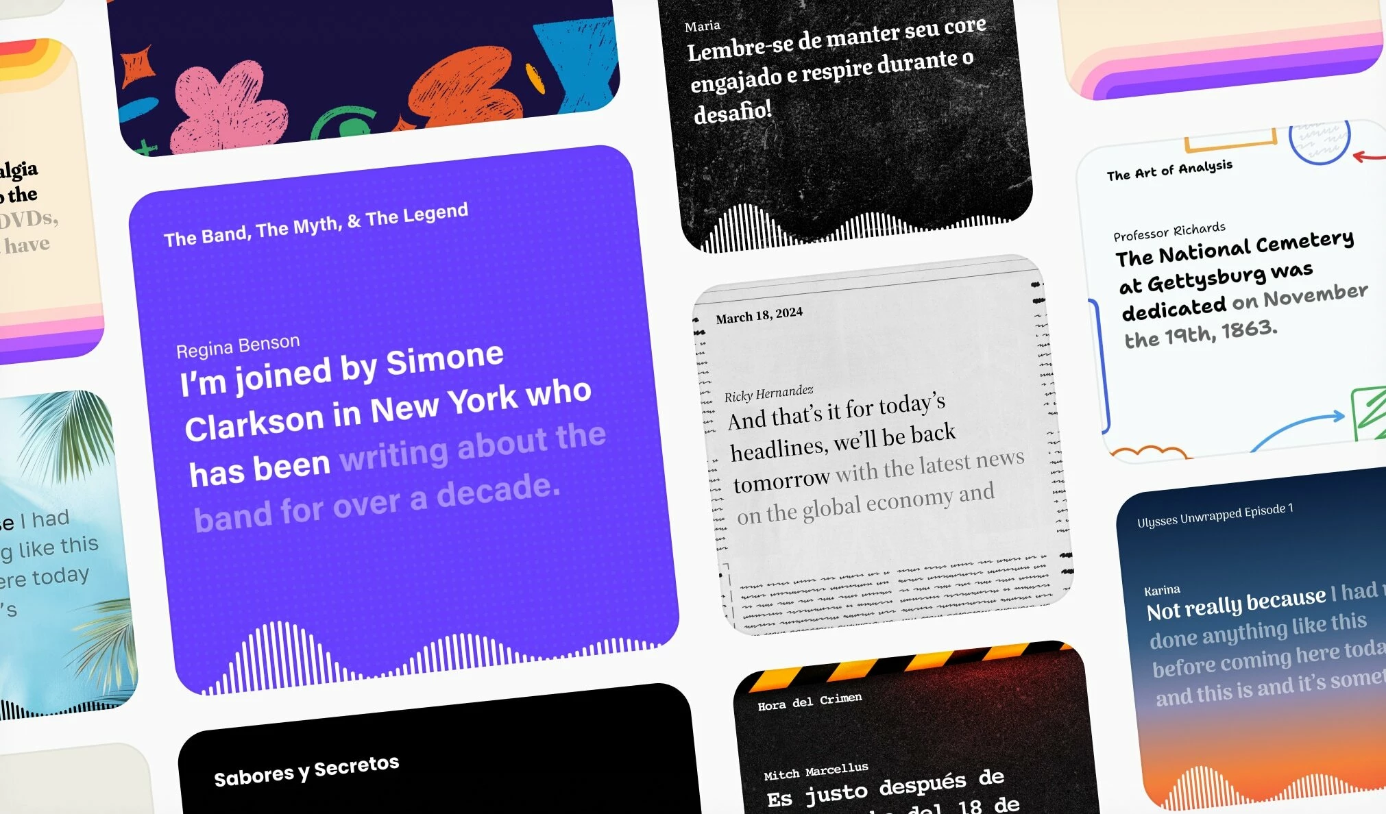 Bring your voice to life visually. Audiograms pair your audio with animated captions and waveforms—perfect for sharing to Instagram, TikTok, or YouTube Shorts. Premium users now get access to 10+ new themes. Choose your style, aspect ratio, and you're ready to post.