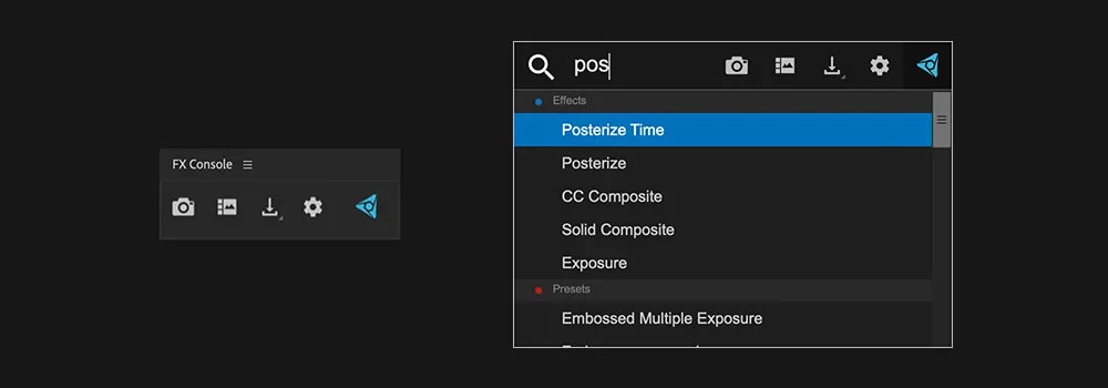 You can also type e:, p:, or m: at the start of your search to limit the result to only effects, presets, or menu commands.