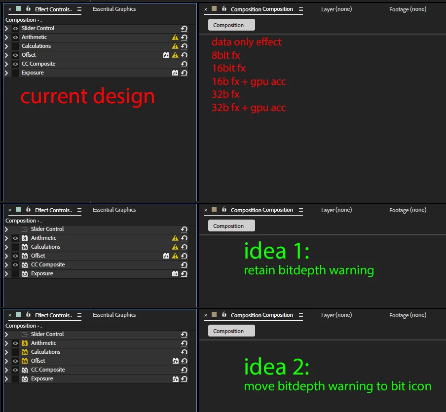 With that in mind, we have been working to modernize the underlying framework of the Effect Controls Panel. We are essentially rebuilding it from the ground up. This is the first stage of a larger project to modernize the UX framework of After Effects.