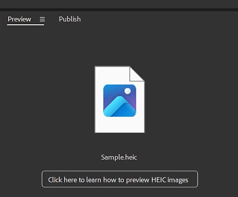 Note: If your Windows machine doesn’t have the required HEIF/HEVC extension installed, you may observe the given message in the Preview panel, when opening .HEIC/.HEIF image files in Bridge.