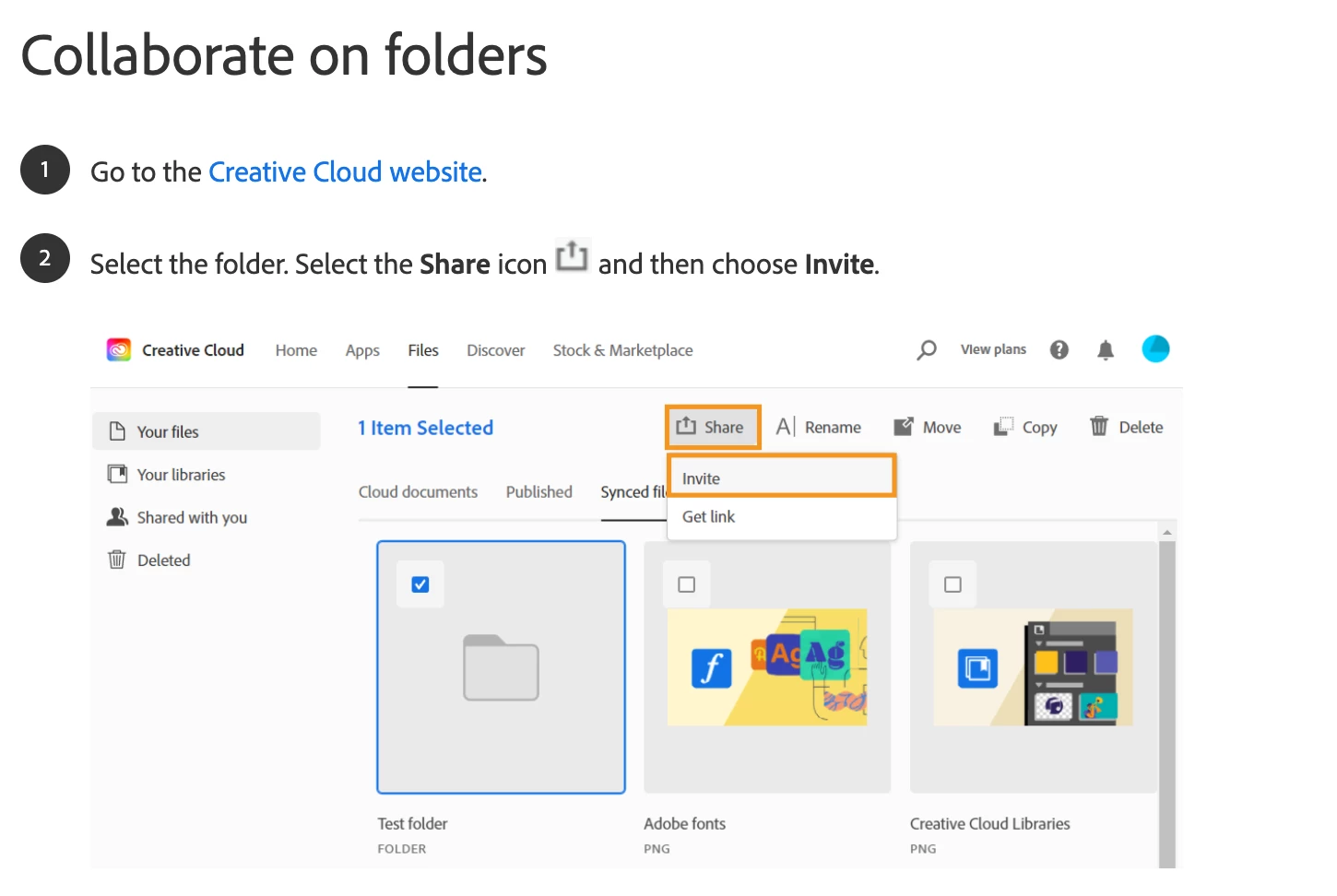 Discontinuation of Synced Files: We would like to inform you that the Synced Files feature in Creative Cloud were discontinued. Starting February 1, 2024 (now extended through February 3, 2025), the Creative Cloud desktop synchronization service, folder, and the file-sharing capabilities of Creative Cloud Synced Files were phased out.