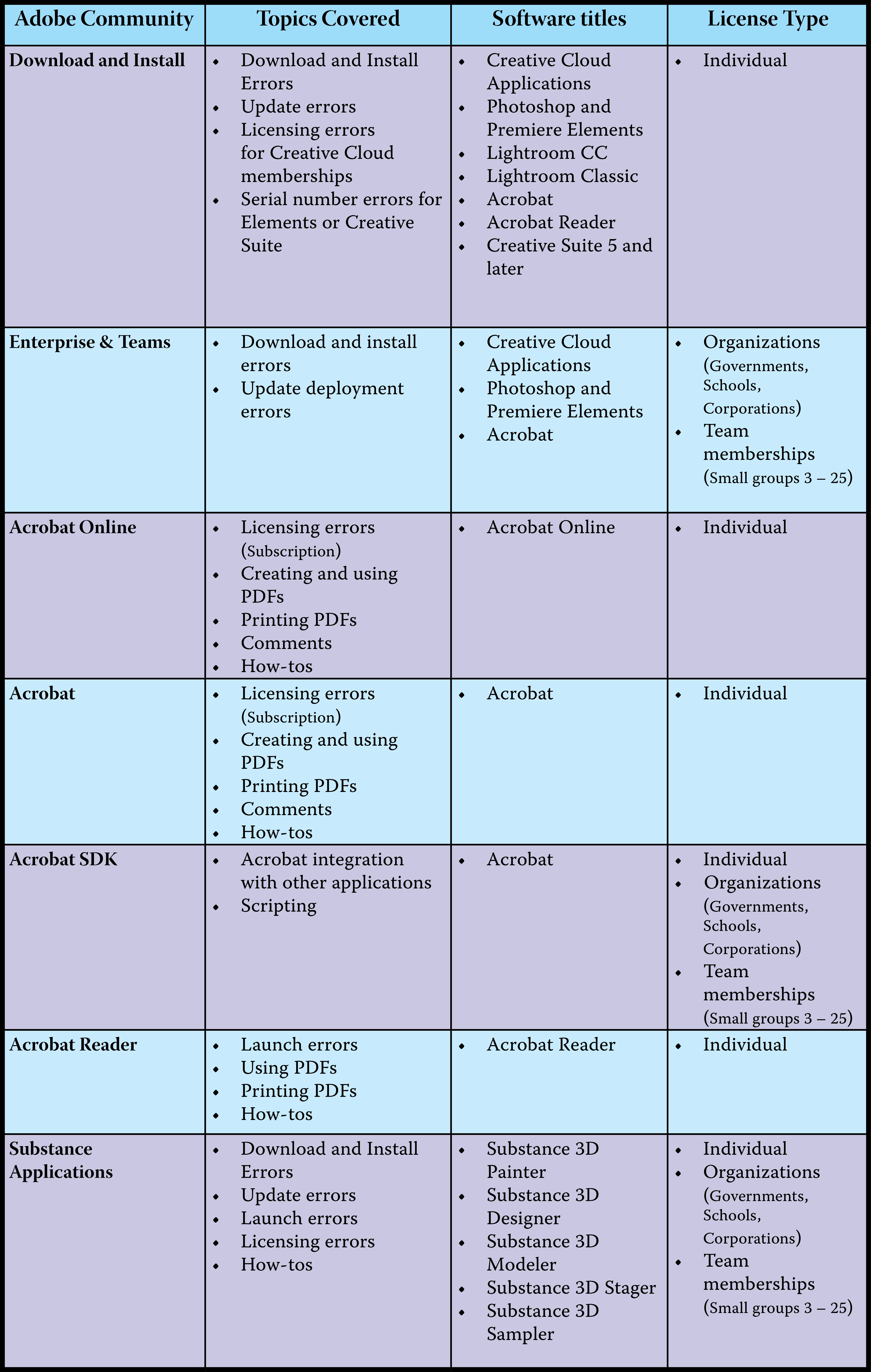 The Adobe Community can help guide you on how to fix download and install error messages, regardless of whether you are an individual User or are offered access through an organization or Employer.