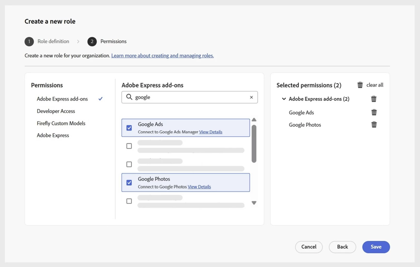Admins can now manage add-on access at both the organization and user level using predefined and custom roles.