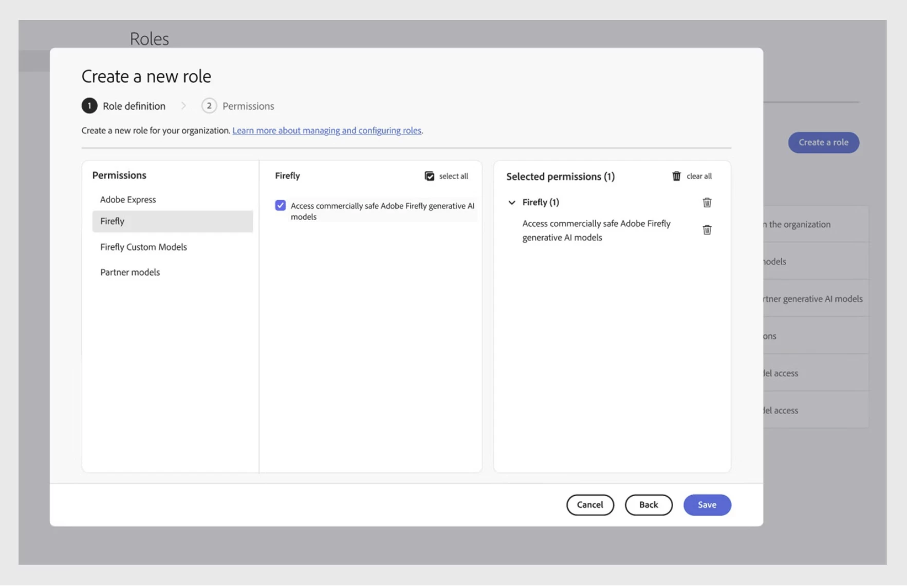 - Manage permissions across Adobe Express, Firefly, and partner model capabilities