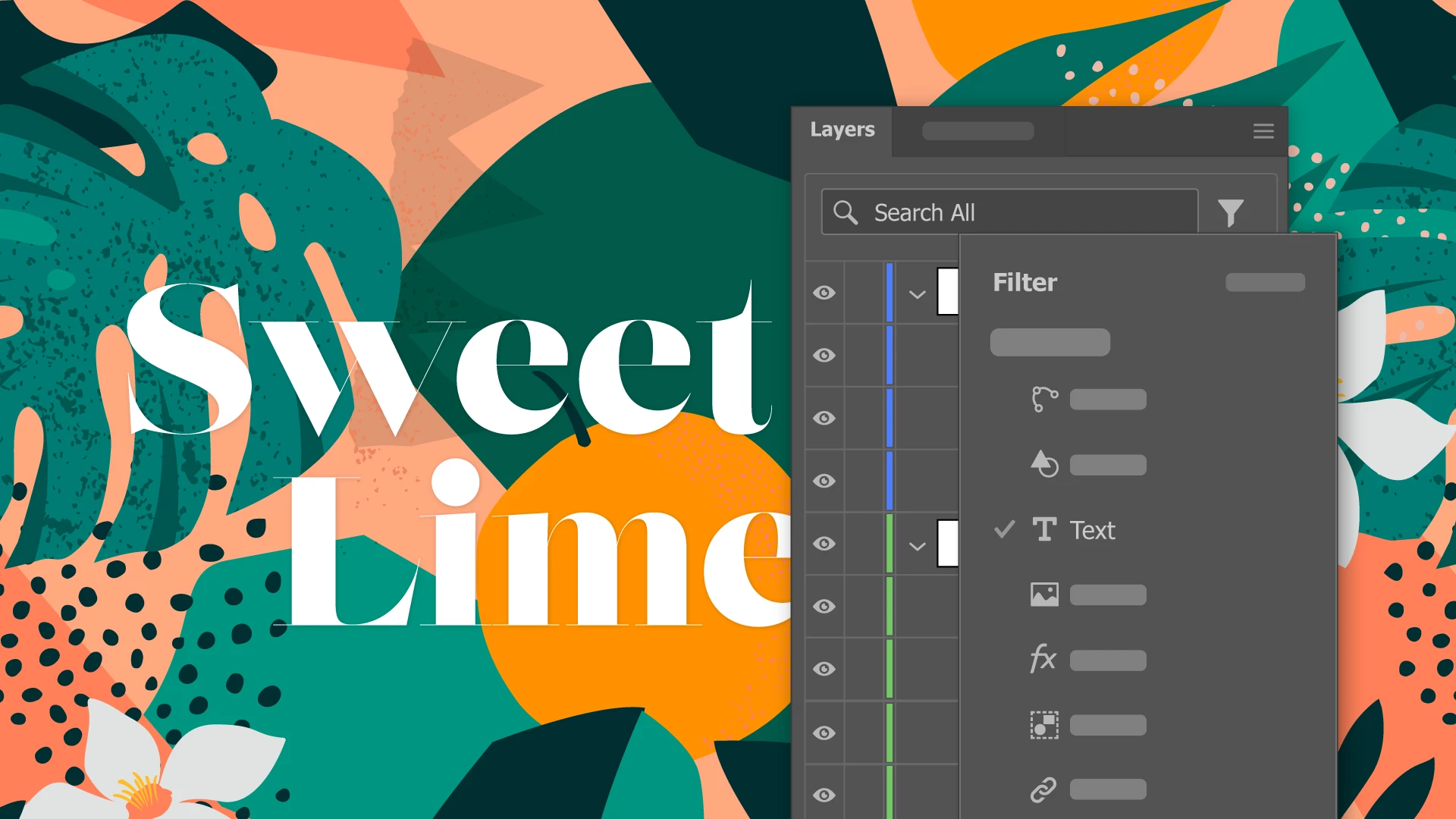 The Layers panel has been improved in Illustrator v27.6, making it easier to find layers and objects. You can now type in a layer or object name or use the layer and object filters to quickly locate specific layers and objects.