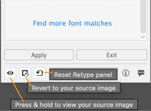 - By pressing and holding the "Eye" button, you can conveniently view your source image and compare it with the current font applied via Retype.