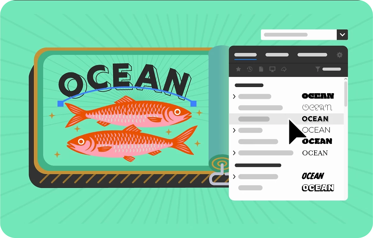 Explore fonts effortlessly with the enhanced font browser, featuring streamlined sections and new filters to help you quickly find and discover fonts from the extensive Adobe Fonts library. Plus, seamlessly organize and manage your fonts using Creative Cloud Libraries—right within the font browser.