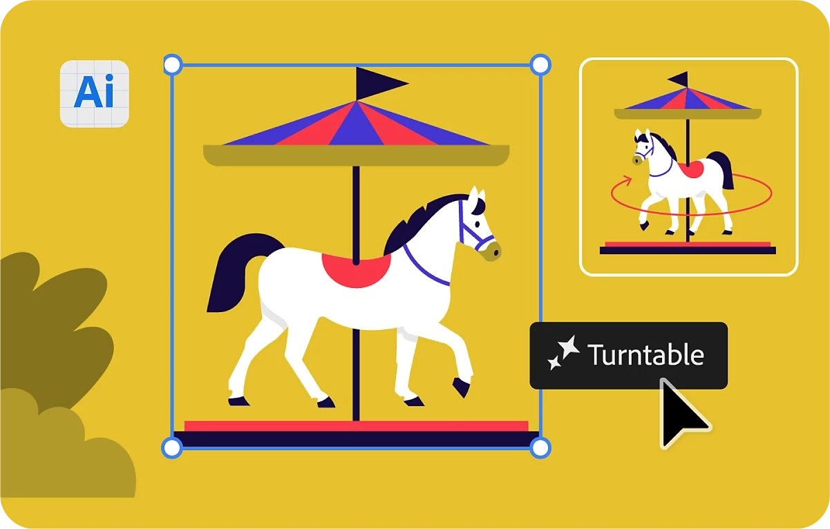 Use Turntable in Illustrator (beta) to rotate and view your artwork from any angle for a more dynamic design perspective.