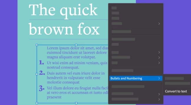Preview color and opacity in real-time Convert bullets and numbering to editable text