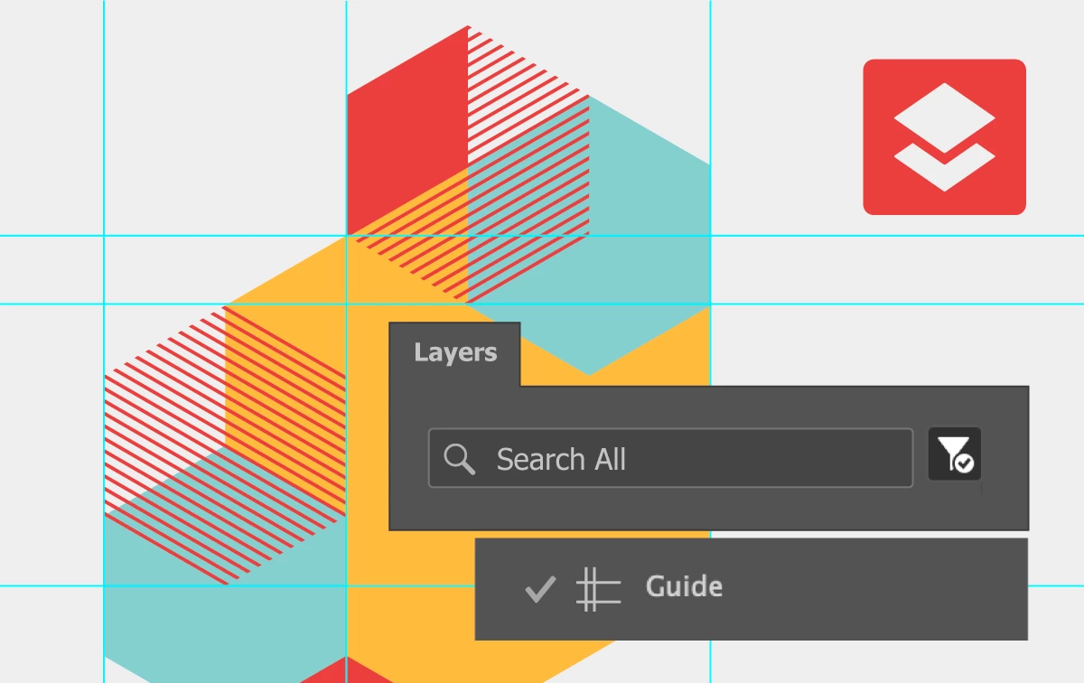 In the Layers panel, you now have enhanced flexibility and control while searching for layers and objects. Utilizing the new Guide filter allows you to locate objects with guides enabled, and you can simultaneously apply multiple filters for added convenience.