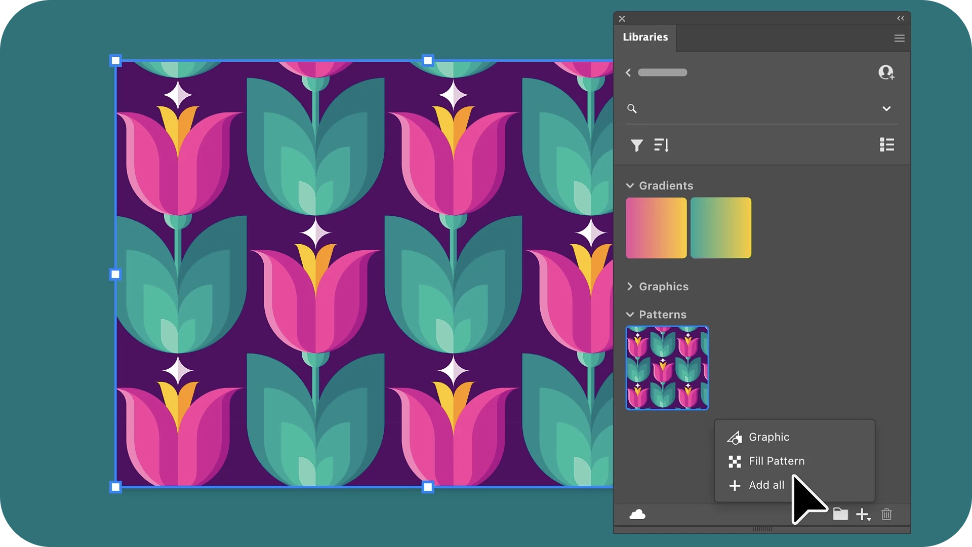 Easily save patterns and gradients to your Creative Cloud Library for quick access, seamless team collaboration, and streamlined workflows, ensuring consistency and efficiency in your designs.