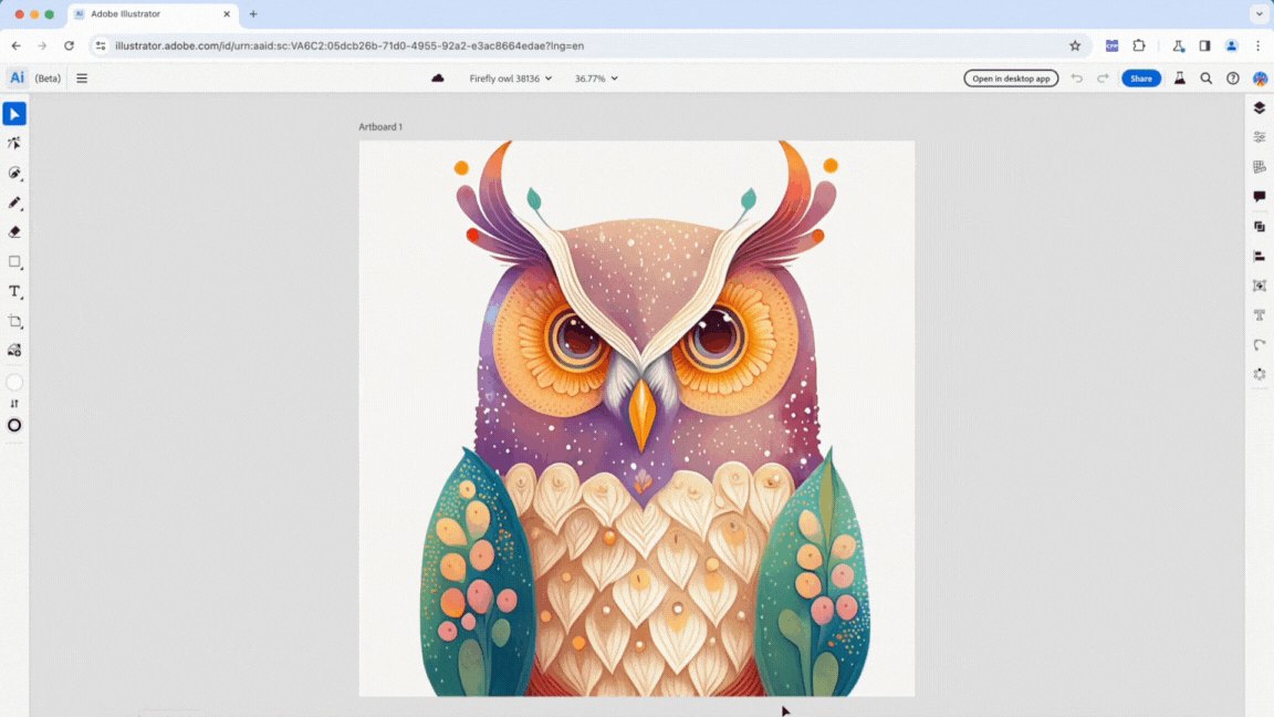 We have already directed users to the Illustrator Desktop app, as a clear CTA is always visible in the application frame. This month, we also added support to trigger the desktop app installation if it's not
