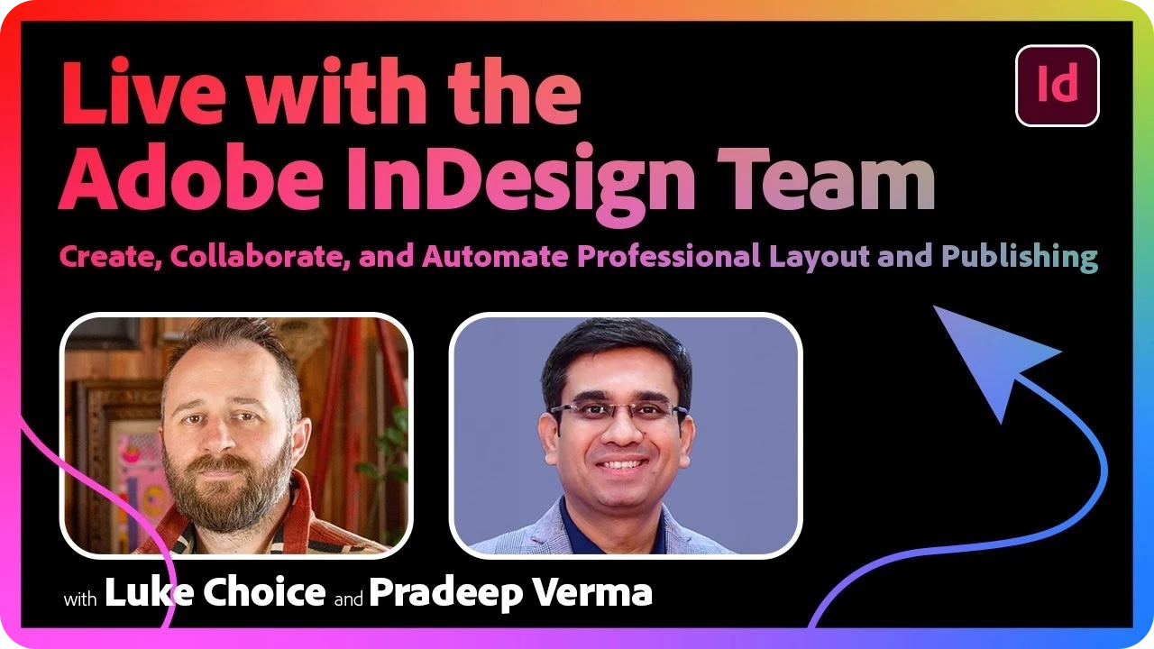 Join Luke Choice and Pradeep Verma for an exclusive behind-the-scenes look at InDesign’s latest community-driven features. Get pro tips on using the newest, most-requested tools to elevate your layout design—fast! Don’t miss this opportunity to learn directly from the experts.