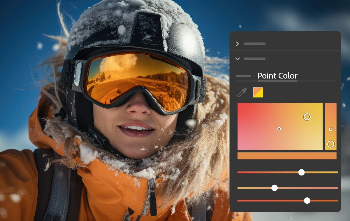 Take control of precise color corrections with Point color without compromising other areas of an image. Adjust the Hue, Saturation, and Luminance of a narrow spectrum of colors with precision.