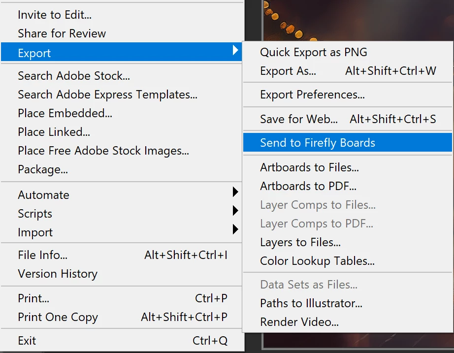 - Round-trip workflow from Firefly Boards → Photoshop (Adobe Firefly Boards)