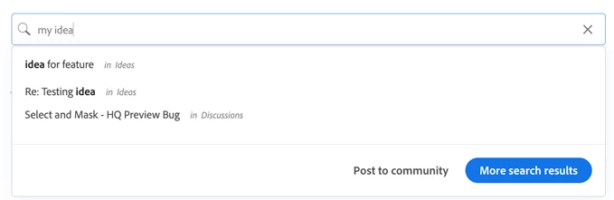 Prior to posting a new bug or idea thread, be sure to first search for your issue to see if another community member has already reported it. If searching doesn't find a similar post, you can click Post to community to start a new thread.