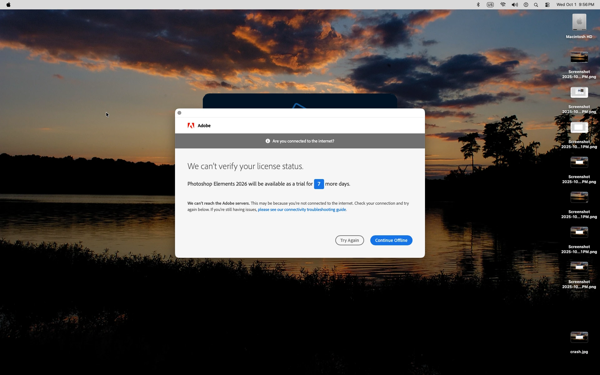 Without the Wi-Fi on one gets this screen and i can click Continue Offline and the PSE 2025 Editor will start and function normally even after turning Wi-Fi back on.