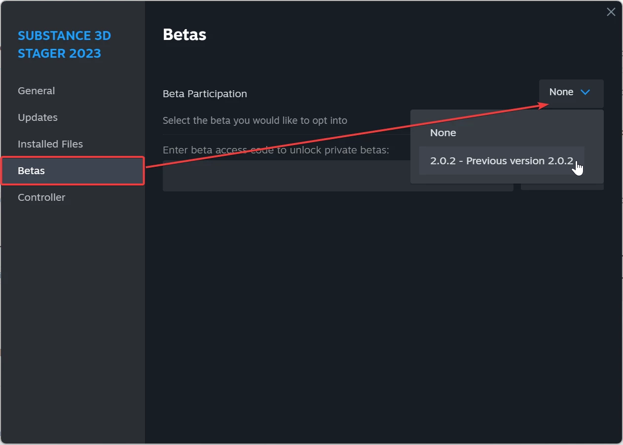 RMB on Stager 2023 > Properties... > Betas > Betas Participation > 2.0.2