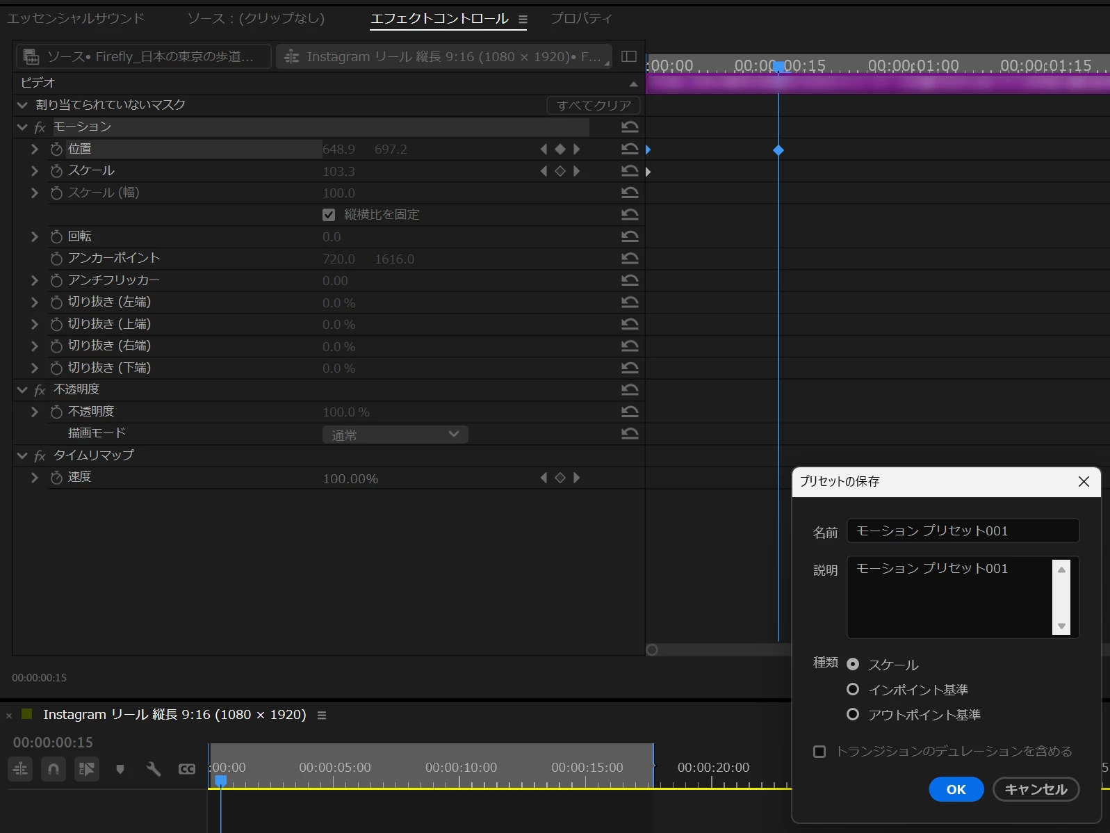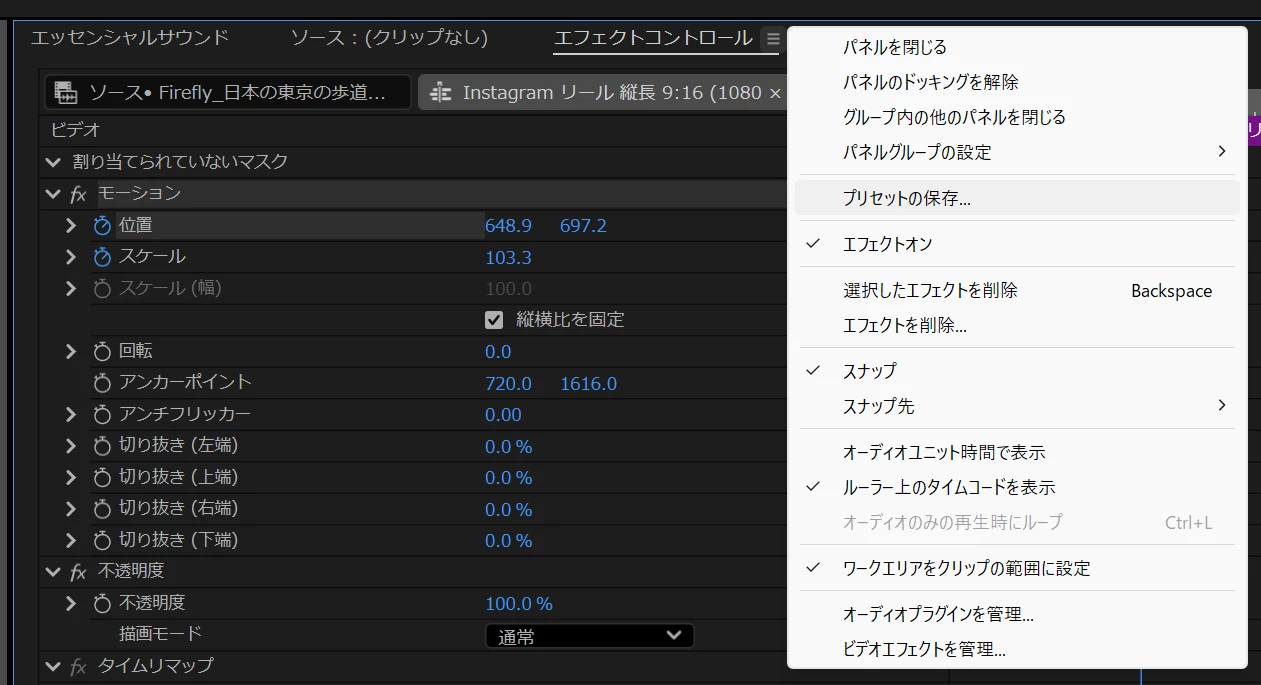 4. Right-click the effect group (e.g., Motion / Transform) and select **Save Preset…**.