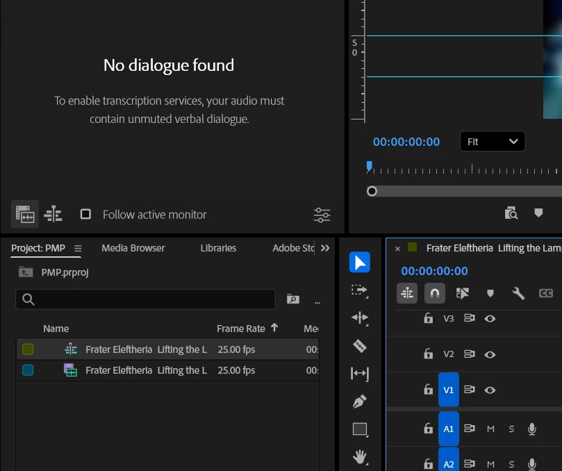 Premiere Pro should detect spoken dialogue and generate a transcript.
