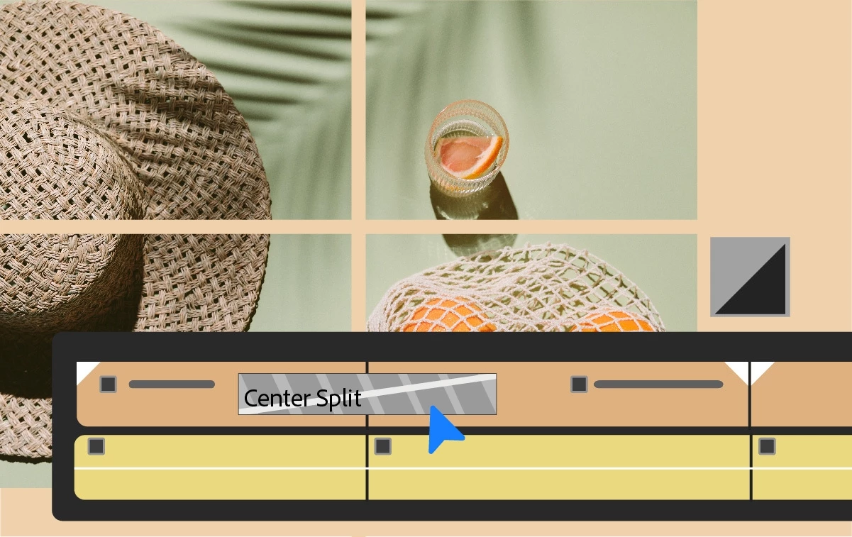 Center Split provides a stylized transition where the image splits into four quadrants that disappear in the screen's corners – or appear if the transition is reversed. Like other Premiere Pro transitions, Center Split is highly customizable.