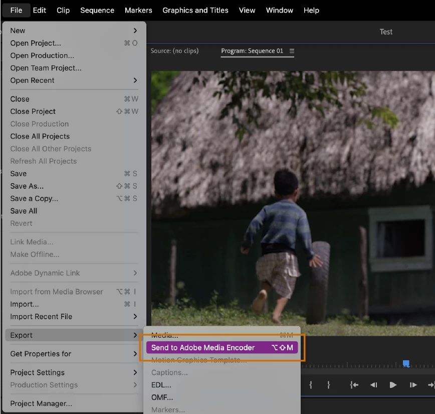 A new menu item and keyboard shortcut allow editors to send their sequence directly to Media Encoder for export, bypassing Export mode.