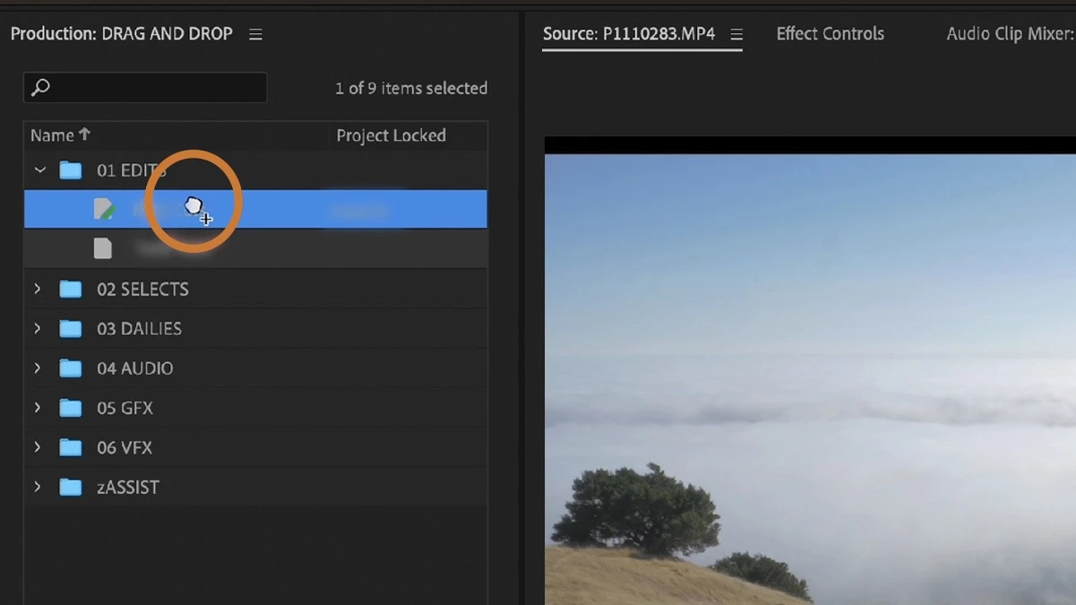 Drag and drop project items in Productions