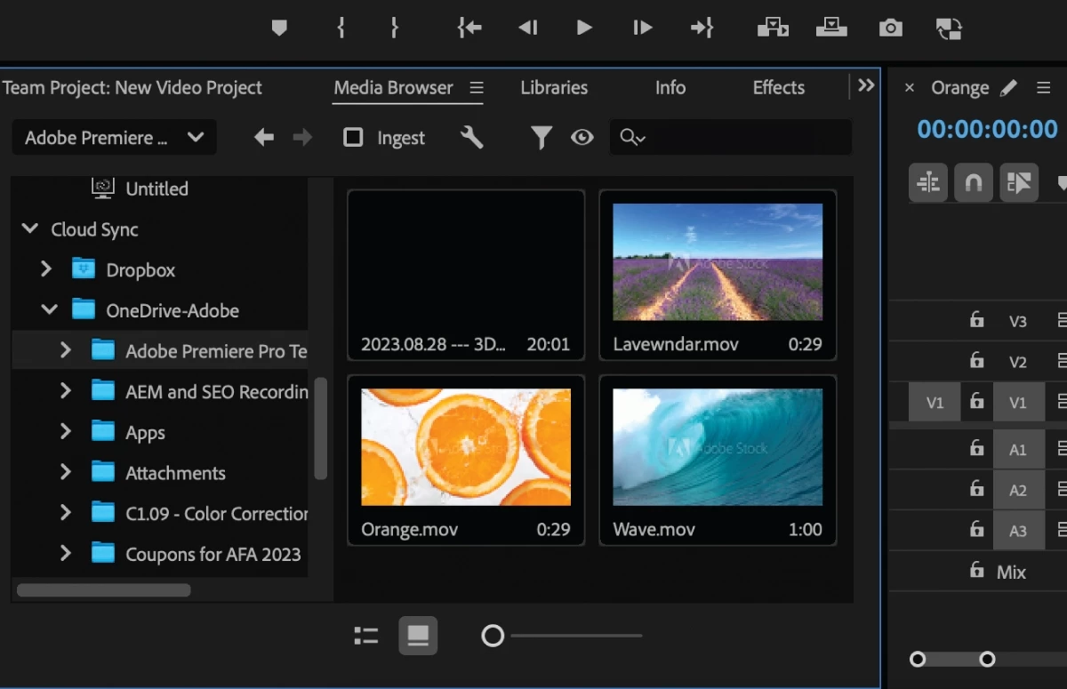 Import media intuitively from cloud locations such as Dropbox or OneDrive, just as you would from a local disk.