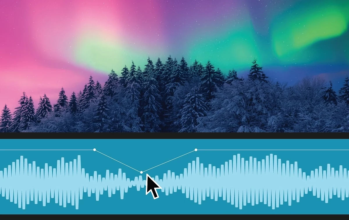 The audio waveforms now reflect adjustments to the volume on clips. Enabled by default, they can be toggled on and off by selecting View > Dynamic Audio Waveforms.
