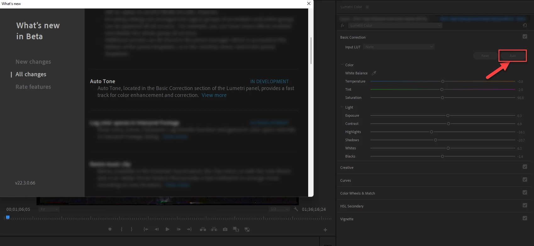 I just updated my Premiere Pro to version 22.0   I was looking for the Auto Tone button, however my still reads Auto. Was Auto Tone button only in the Beta version?