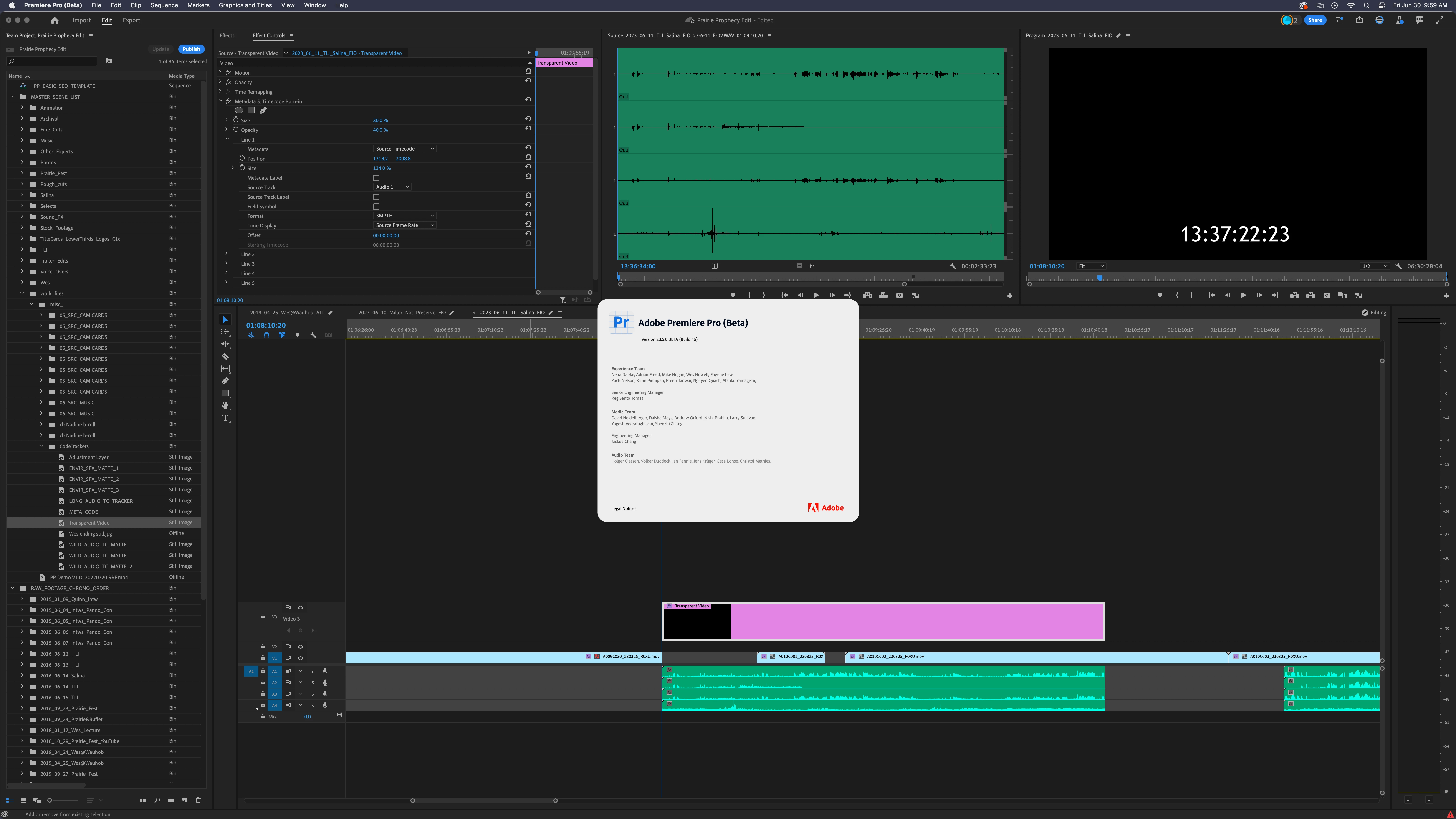 Note: Metadata & Timecode Burn-in effect is not yet available on Apple silicon Macs, but will be coming soon. If you use an M1 Mac and want to test this effect, you can run the Premiere Pro Beta in Rosetta mode by opening the Beta section in Creative Cloud, finding Premiere Pro, then choosing "Open (Intel)" from the ellipses (three dots) menu.