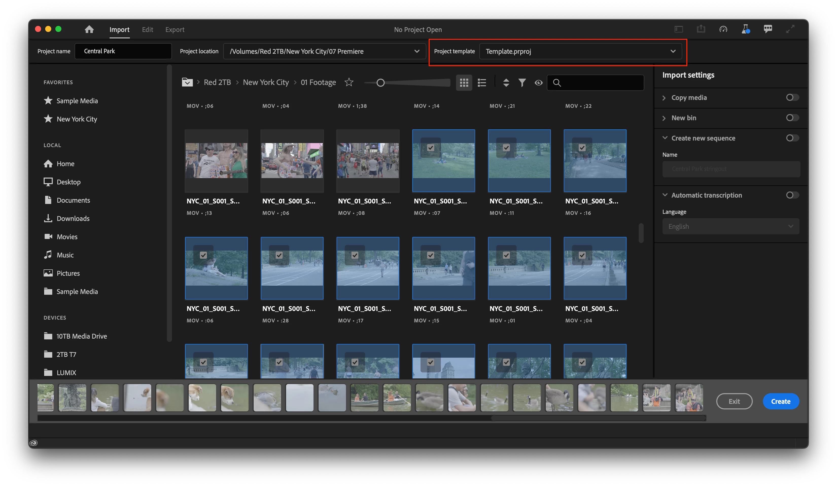 You can now start a new project based on a template project in import mode.  It’s common to repeat your same workflow from project to project and pros have learned that  creating a project template speeds things up when getting started and gives you a head start on organization.