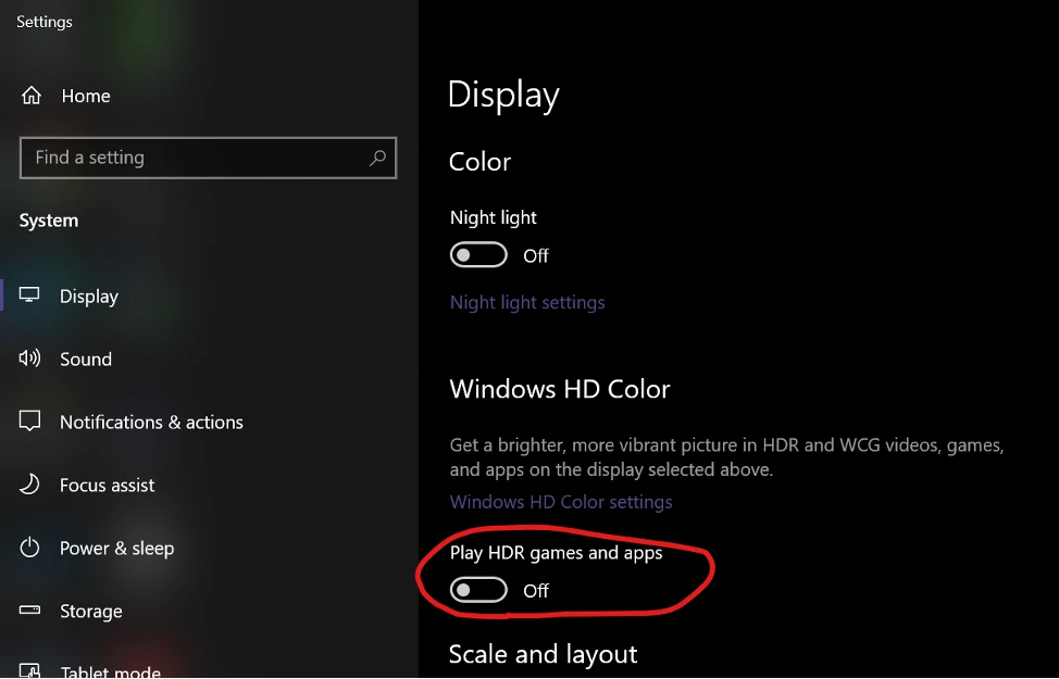 To enable DirectX HDR support, you need to switch on the “Play HDR games and apps” in Display Settings as demonstrated in the System Requirement section. That will put your system into advanced color mode.