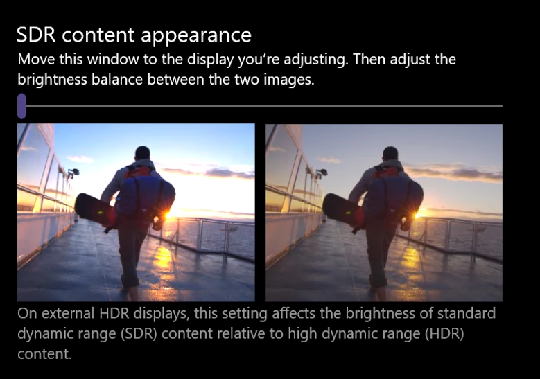 - Drag slider SDR content appearance to adjust the brightness of SDR content.