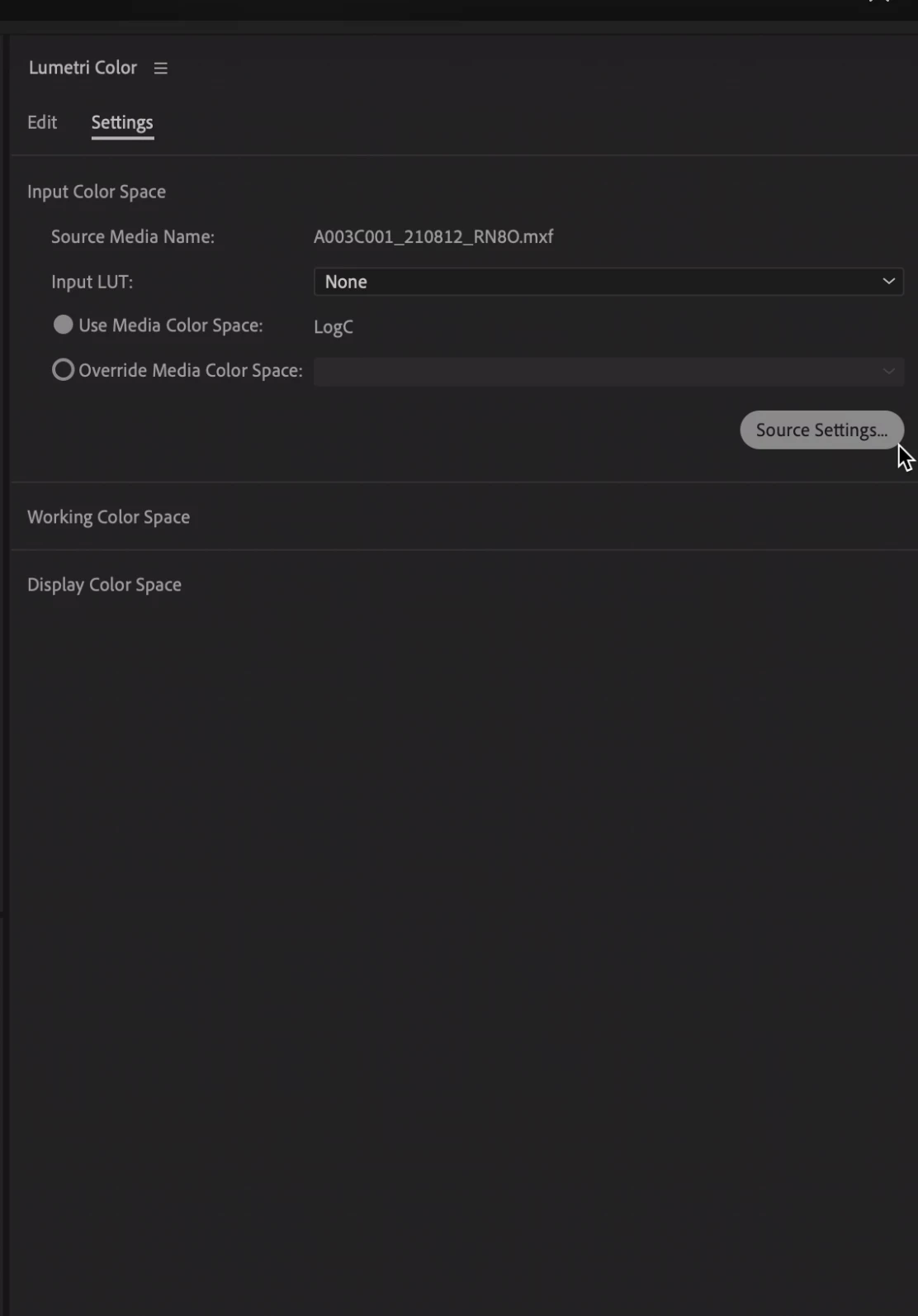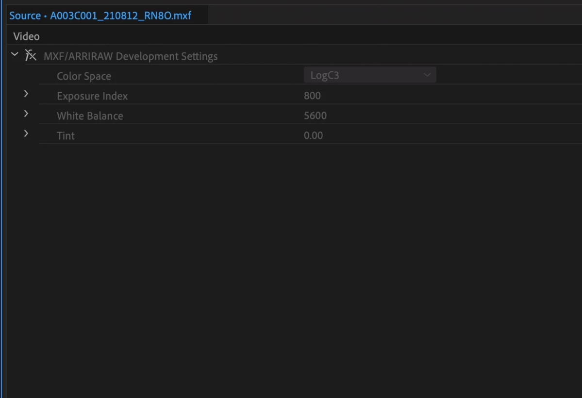 You can access the ARRIRAW source settings via the new color settings panel as well by disabling the effect and clicking on ‘Source settings’.