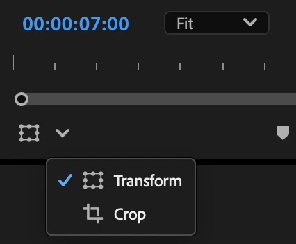 You can also crop directly in the Program Monitor. Click on the new button under the Program Monitor which will bring up a menu to switch between Crop and Transform.