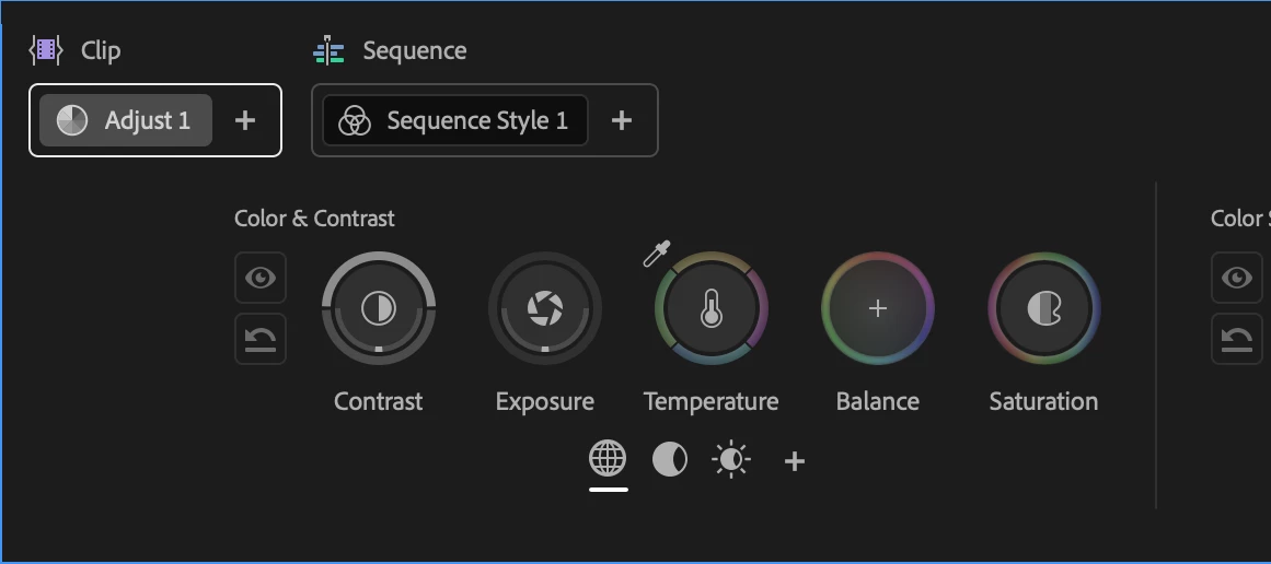 The Color Controls panel has been designed to expose maximum color adjustment functionality within minimum space, so you spend more time grading and less time opening collapsed groups and scrolling around to find what you need. Adjust operations give you surgical control over the image, while Style operations let you use saved Style presets or build-your-own combinations of modules designed to make artistic adjustments fast and fun. Two dimensional color controls let you simultaneously adjust related parameters for maximum creative control, while a heads-up-display gives you contextual analysis and guidance when you need it, disappearing when you don't.